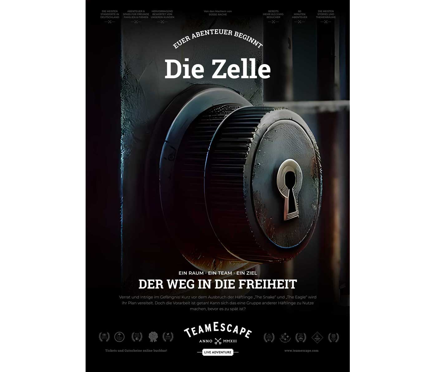 TeamEscape betreibt mehrere Escape-Room-Standorte mit unterschiedlichen Themenwelten.